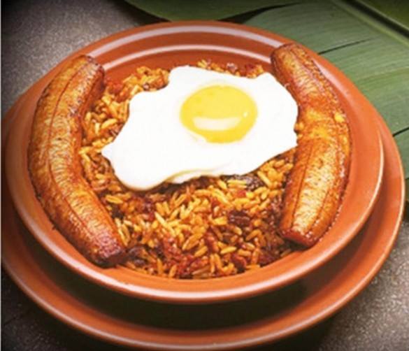 Variedad de carnes con plátano y arroz graneado