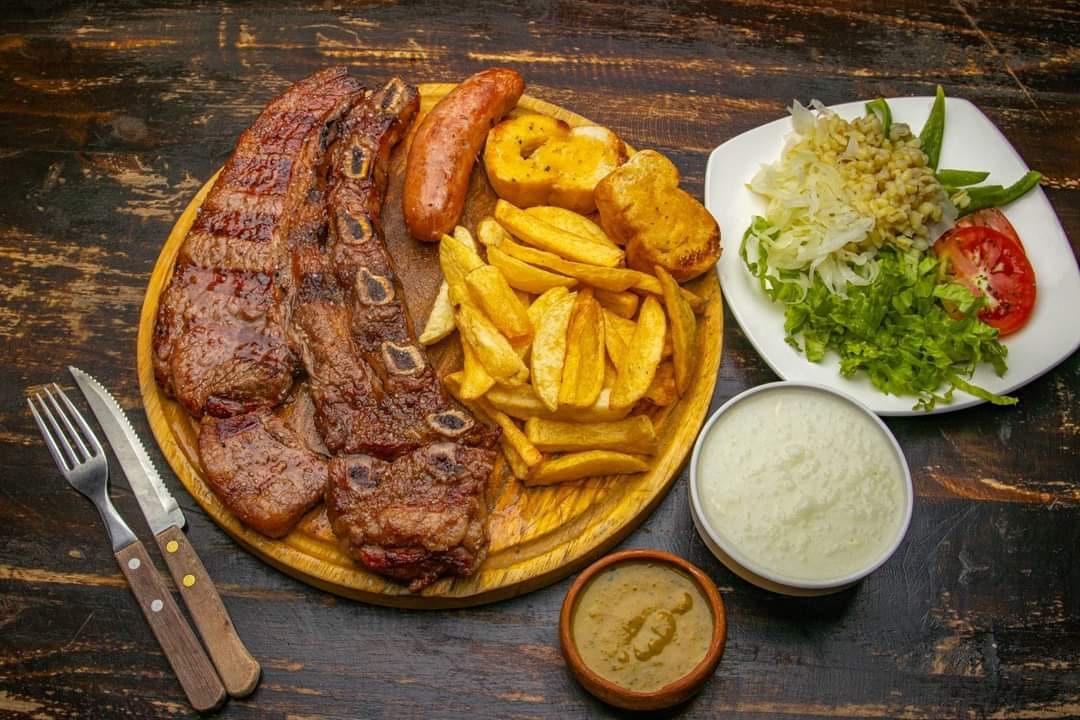 Variedad de carnes exquisitas de sabores diferentes de la carne del monte. Acompañado de yuca frita, plátano frito, arroz graneado y ensalada.